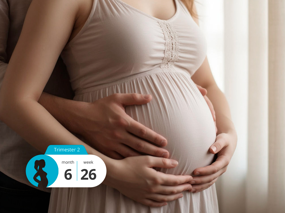 At 26 weeks gestation (seventh month of pregnancy), most women experience regular fetal movements. The body works harder than in the second trimester, often causing fatigue, mild weakness, and sleepiness. Breast tissue begins preparing for lactation.